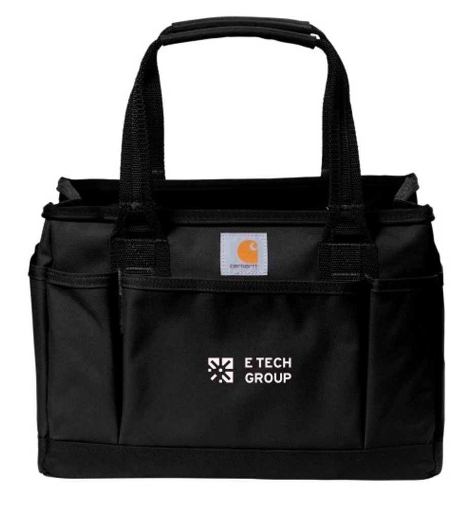 • This rugged tote is versatile enough to lug around all your work gear, keep near your work bench or toss in the truck and haul everything you need-regardless of light rain. Made from durable heavyweight canvas, this ultra-tough tote never stops performing. A sturdy base helps ensure it can stand on its own. • 600D polyester • Rain Defender durable water repellent (DWR) • Large opening into main compartment • Dual webbing haul handles with comfort grip • 11 exterior pockets, 6 interior pockets and 7 interior loops • Sturdy base to help tote remain upright • Carhartt label sewn on front • Dimensions: 9.5"h x 13.5"w x 8"l • Note: Bags not intended for use by children 12 and under.